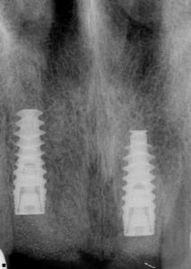 Replacement of Four Traumatised Maxillary Incisors with Two Implants and a Four-Unit Bridge
