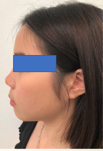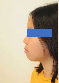 Take this teenager, her upper and lower lips are protruding. The nasolabial angle is an acceptable 90 degrees, but this is because the nose is upturned and the upper lip sticks out.